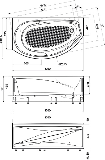 Акриловая ванна Poseidon Damelia 170x100 L - арт. 01дам1710л.