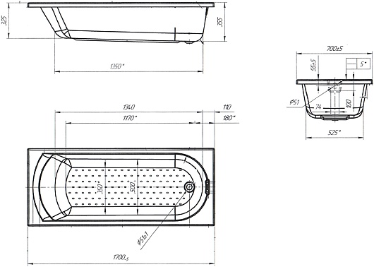 Акриловая ванна Poseidon Lily 170x70 - арт. 01лил1770.