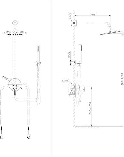 - Ручной и верхний душ из латуни.