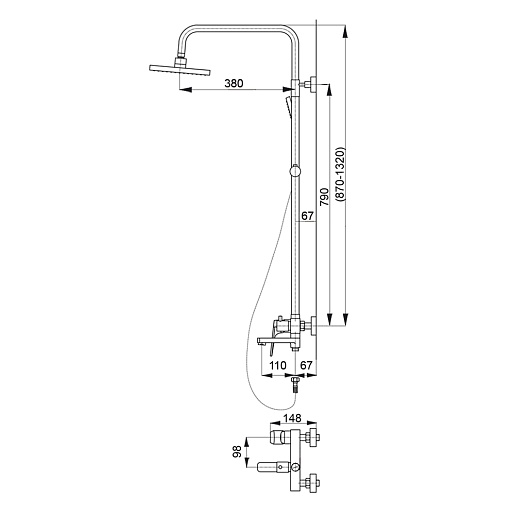 - Верхний душ, см: 20