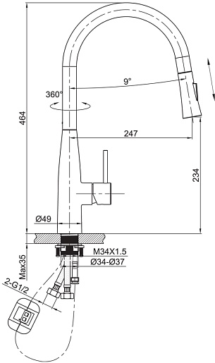 - Поворотный на 360 градусов излив.