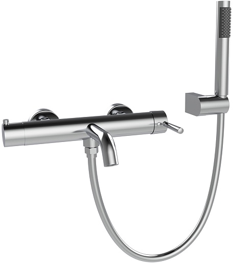 В комплекте: смеситель, душевая лейка, держатель для лейки, душевой шланг.
