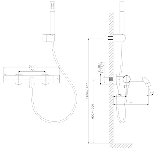 В комплекте: смеситель, душевая лейка, держатель для лейки, душевой шланг.