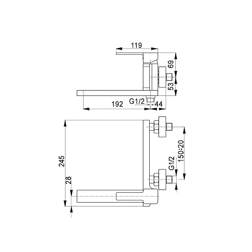 Длина излива, мм: