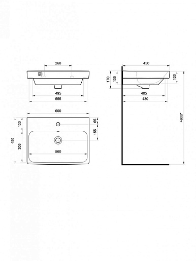 - Керамическая раковина Santek Адриана 60 учитывает основные современные тенденции дизайна, требования потребителя и удобства ванной комнаты.- Лаконичный бортик может быть использовать для аксессуаров, а встраивание в мебельную тумбу экономит место и создает дополнительное пространство для хранения.