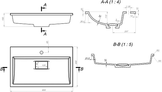 - Размер (ШxДxВ): 600 x 450 x 145 мм.