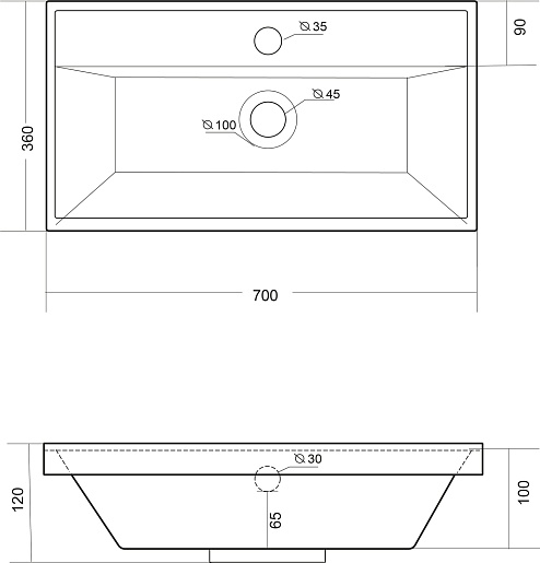 - Размер (ШxДxВ): 700x360x120 мм.