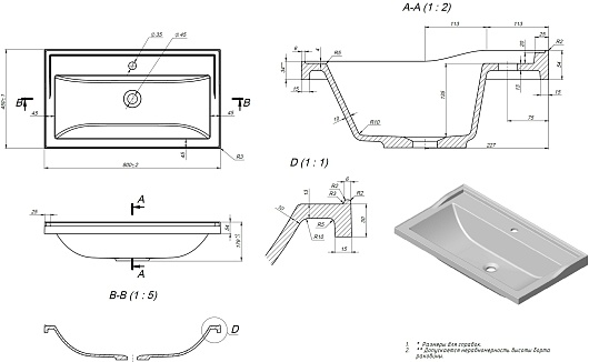 - Диаметр отверстия под смеситель: 35 мм.