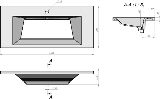 - Размер (ШxДxВ): 1000 x 450 x 144 мм.