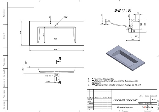 - Материал: литьевой мрамор.- Установка донного клапана не предусмотрена.