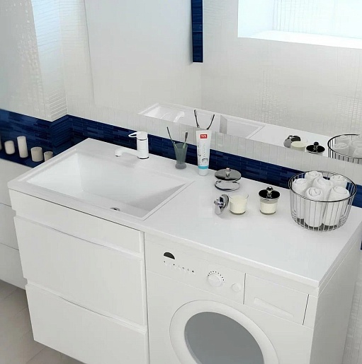 - Одно отверстие под смеситель по центру чаши. Подходит к стиральным машинам глубиной до 470 мм.