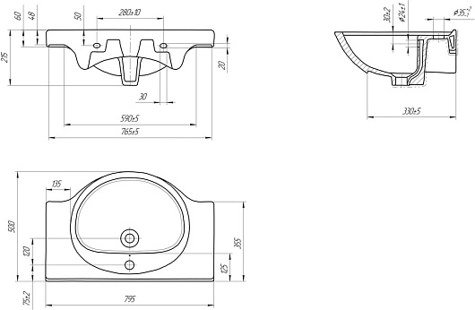 Раковина мебельная Viant Cersanit Erica 80 - арт. S-UM-ERI80/1-w.
