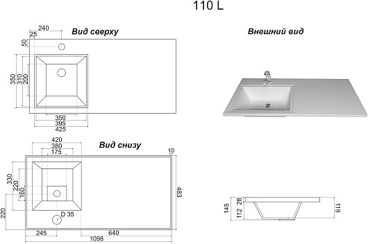 Раковина мебельная над стиральной машиной Stella Polare Мадлен 110 L - арт. SP-00000837.
