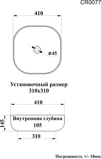 - Размер (ШxДxВ): 410x410x145 мм.