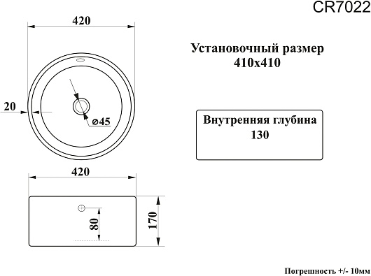 Накладная раковина Ceruttispa 42 CR7022 - арт. 9859.