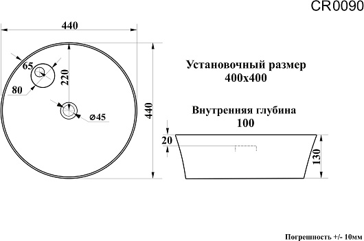 - Размер (ШxДxВ): 440x440x130 мм.