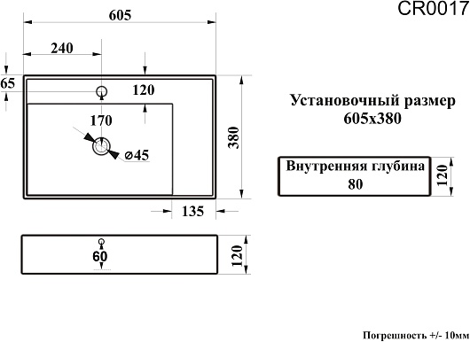 - Размер (ШxДxВ): 605x380x120 мм.