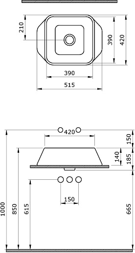 - Размер (ШxДxВ): 515x420x185 мм.
