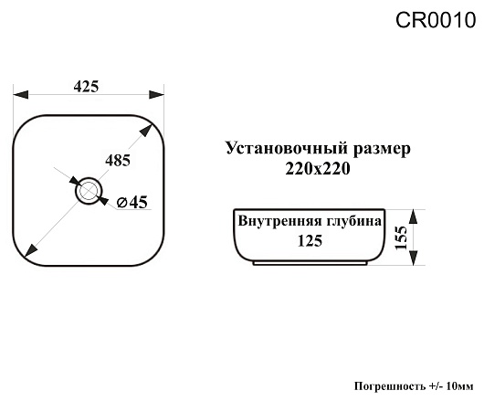 - Размер (ШxДxВ): 525x525x155 мм.