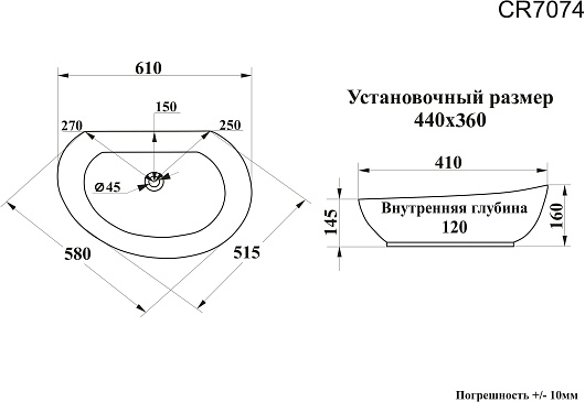 Накладная раковина Ceruttispa CR7074 - арт. 9589.