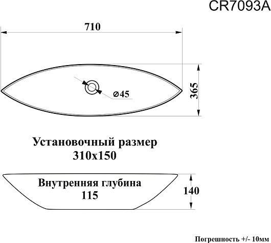 Накладная раковина Ceruttispa CR7093A - арт. 9592.