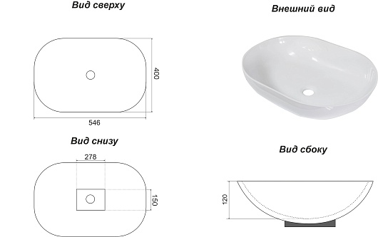 - Размер (ШxДxВ): 546x400x120 мм.