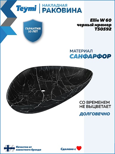 Накладная раковина Teymi Ellie W 60 T50592 черный мрамор - арт. T50592.