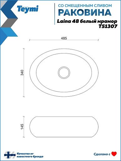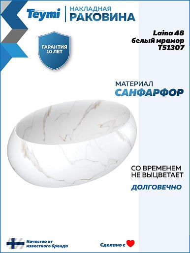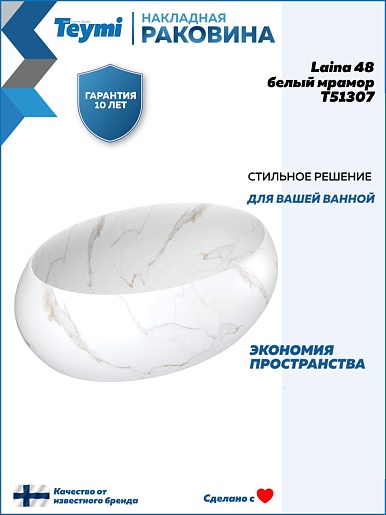 Накладная раковина Teymi Laina 48.5 T51307 белый мрамор - арт. T51307.