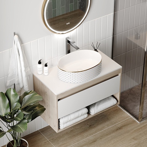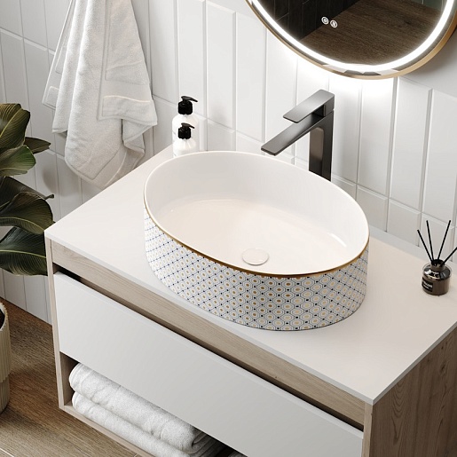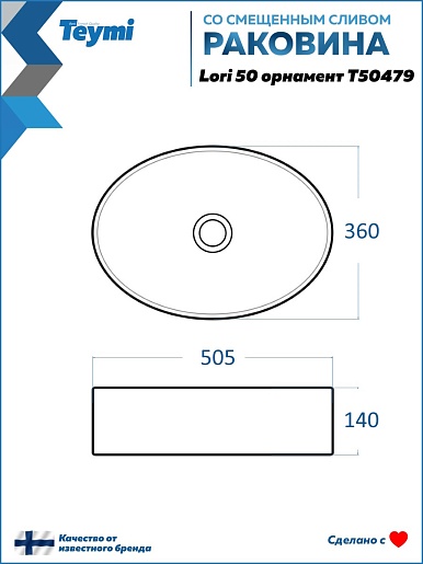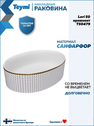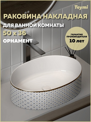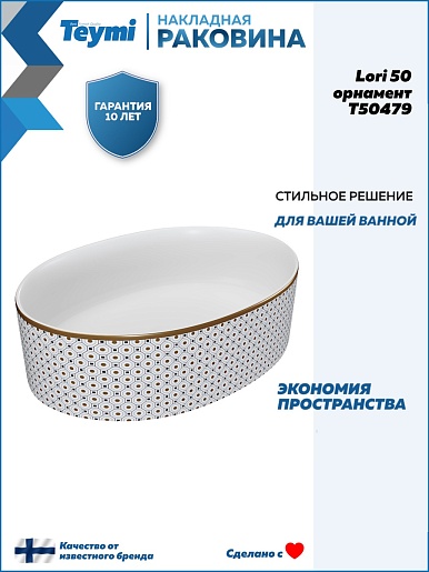 Накладная раковина Teymi Lori 50.5 T50479 белая с орнаментом - арт. T50479.