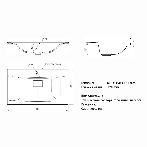 - Умывальник изготовлен из экологически чистого литьевого мрамора, который обеспечивает высокое качество, надежность, практичность и безопасность изделия.