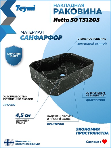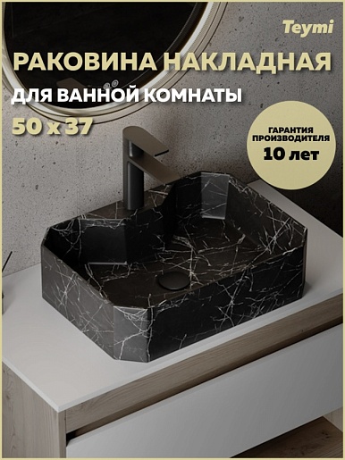 Teymi Раковина накладная Netta 50 T51203 черный мрамор