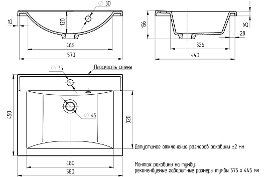 - Умывальник изготовлен из экологически чистого литьевого мрамора, который обеспечивает высокое качество, надежность, практичность и безопасность изделия.