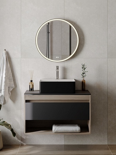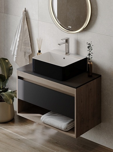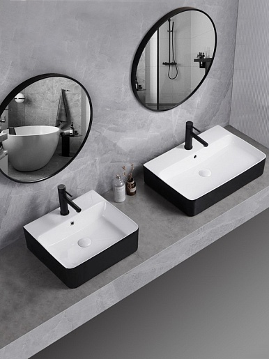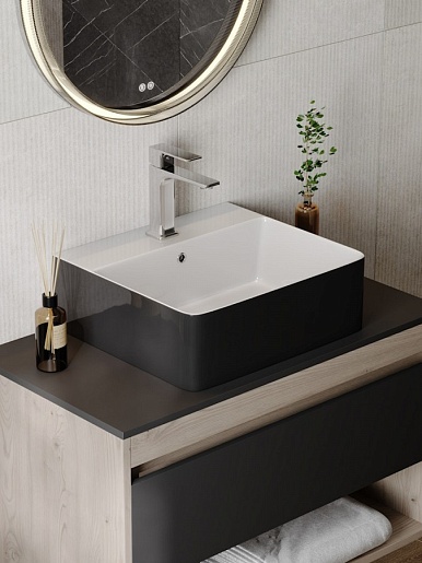 Teymi Раковина накладная в ванную Helmi 46 Duo чёрно-белый глянец T50271