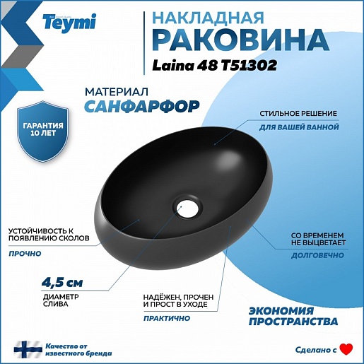 Teymi Раковина накладная в ванную Laina 48 чёрный матовый T51302
