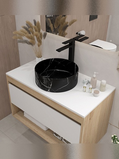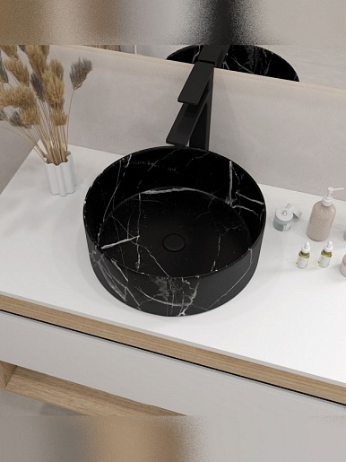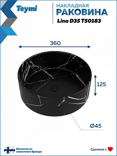 Teymi Раковина накладная в ванную Lina D35 мрамор чёрный матовый T50183