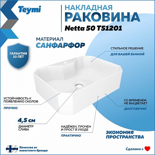 Teymi Раковина накладная в ванную Netta 50/37 белая T51201