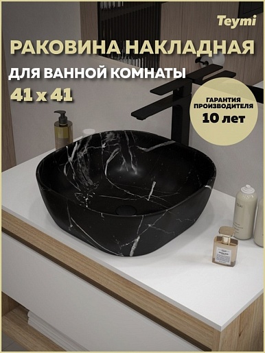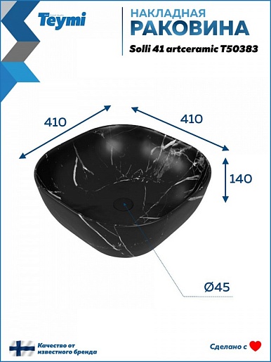 Teymi Раковина накладная в ванную Solli 41 artceramic мрамор чёрный матовый T50383