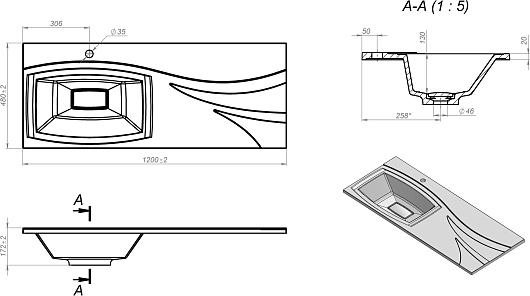 - Размер (ШxГxВ): 1210x480x172 мм.