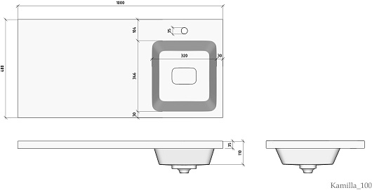 - Размер (ШxГxВ): 1000x480x110 мм.