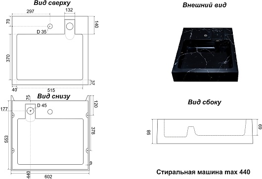 Stella Polare Раковина под стиральную машину Солярис 60х55 черный мрамор