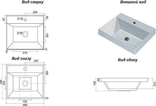 - Размер (ШxДxВ): 495x346x138 мм.