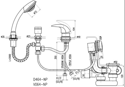 - Излив монтируется в ванну
