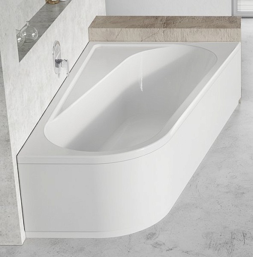 Ассиметричный угол ванны повернут так, чтобы обеспечить максимальный комфорт во время ее принятия.