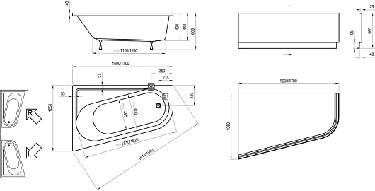 Акриловая ванна Chrome 170x105 R - арт. CA41000000.