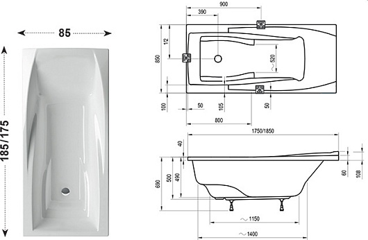 Ravak Акриловая ванна You 185 со скрытым переливом