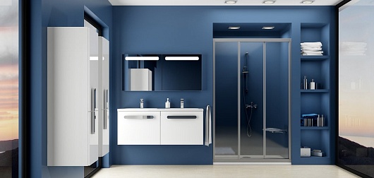 - Двери состоят из одной неподвижной и двух подвижных частей