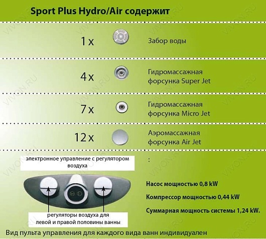 Ravak Комплект гидромассажа Ravak Sport Plus Hydro/Air Standart