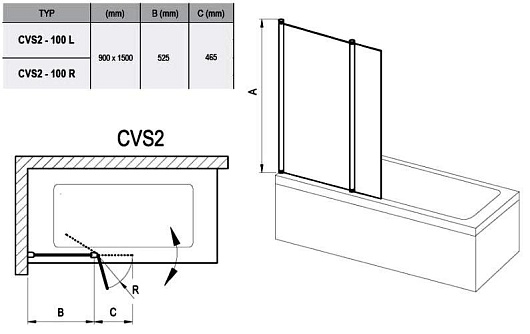 Шторка для ванной CVS2-100 R арт. 7QRA0C00Z1: