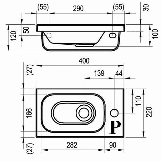 - Умывальник Chrome 400 правый белый с отверстиями, арт. XJGP1100000