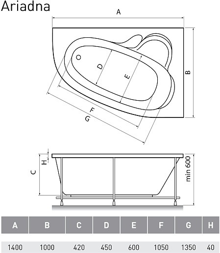 Акриловая ванна Ariadna 140x100 R - арт. Гл000000952.